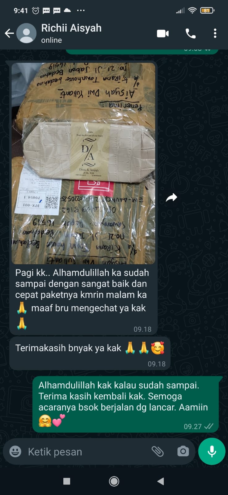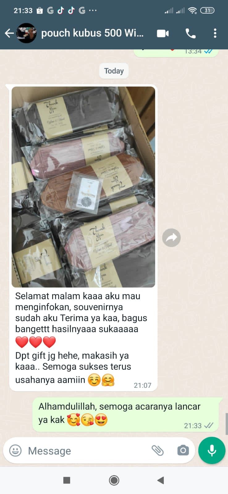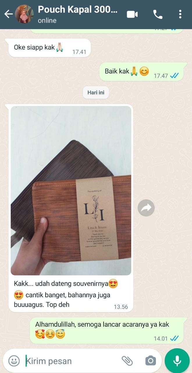 "Souvenirnya cantik banget! Semua tamu pada komentar kalau unik dan beda dari biasanya. Packing-nya juga rapi banget, jadi nggak khawatir rusak. Makasih sudah bikin hari pernikahan kami makin berkesan.β